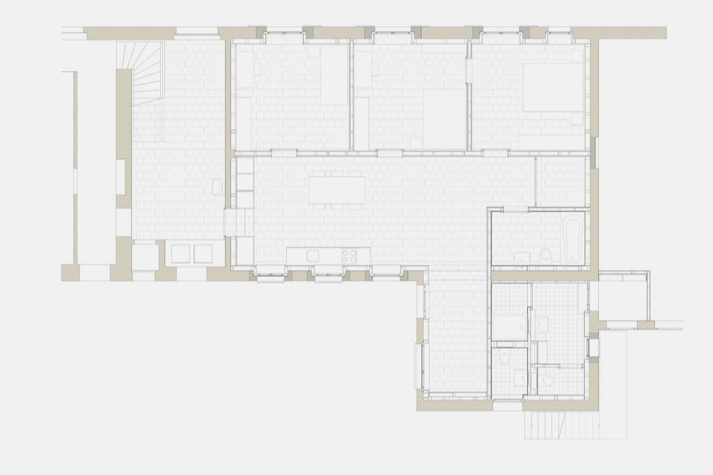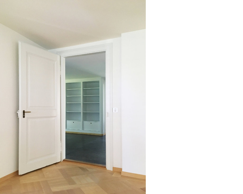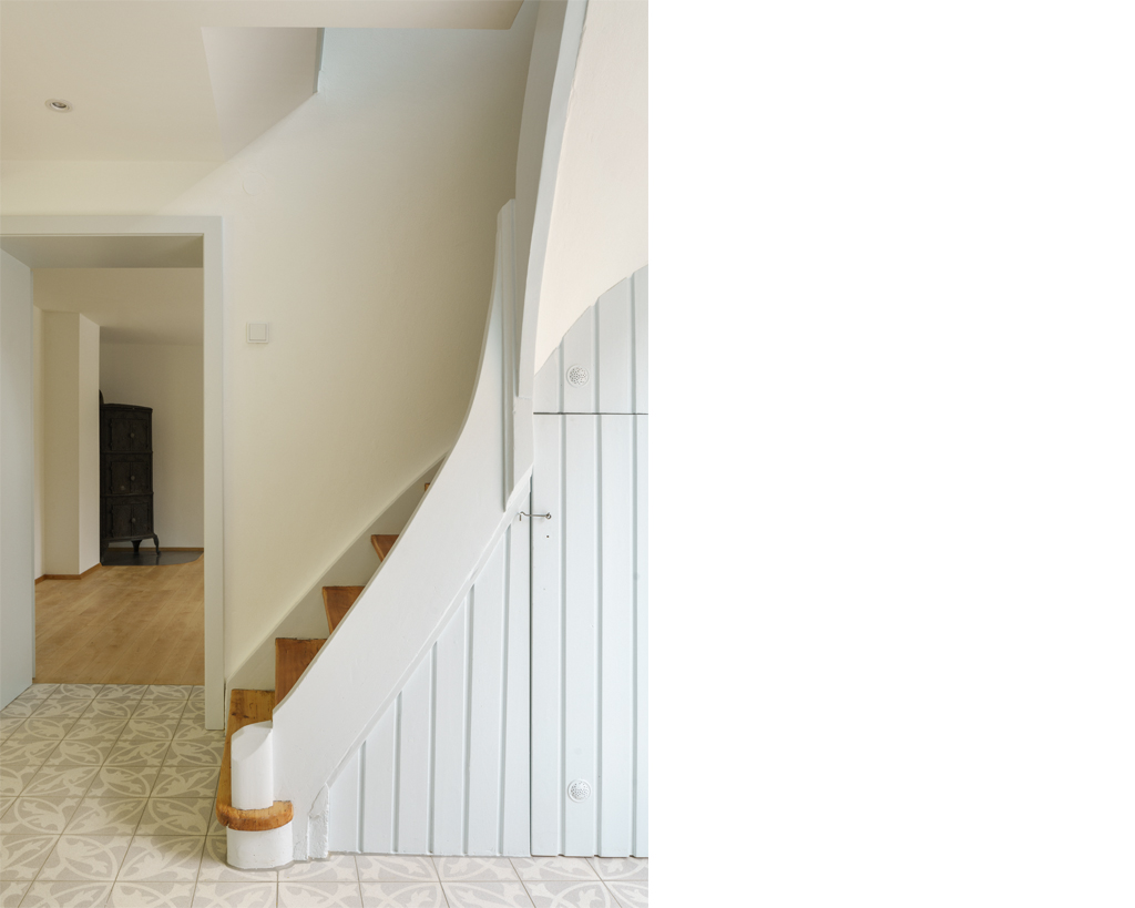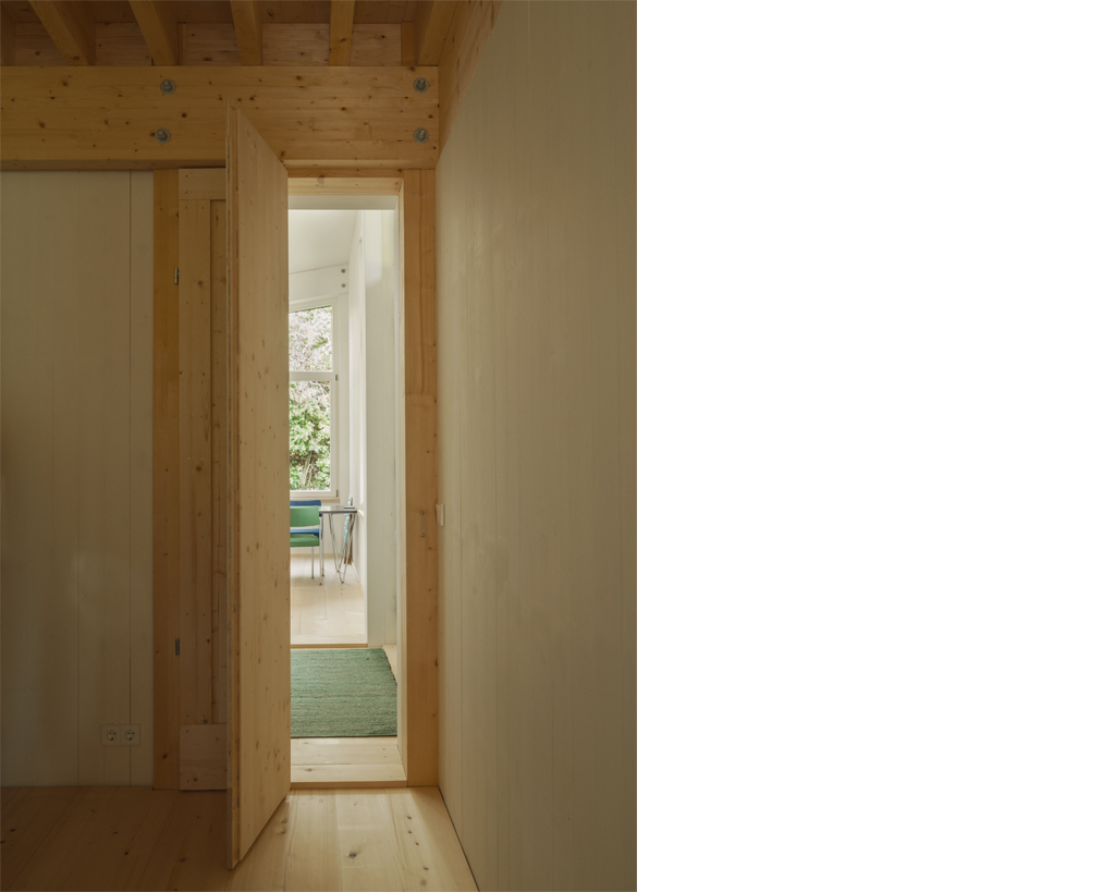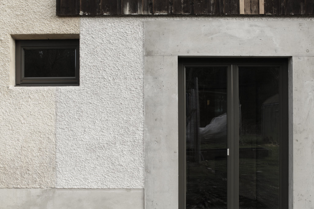 Innerhalb der Bestandsstruktur haben wir wenige, aber präzise Anpassungen vorgenommen, die eine freiere Benutzbarkeit, sowie vielfältigere räumliche Bezüge ermöglichen. Die sorgfältige, hochwertige Materialwahl im Ausbau, sowie Einbaumöbel, die im Charakter des Hauses entworfen sind, erzeugen mit wenig Maßnahmen viel Mehrwert. Aus energetischen Gründen wurde außerdem eine Fassadensanierung des in den 70er Jahren ergänzten Hausteils in Angriff genommenen. Gleichzeitig nahmen wir damit eine sanfte Korrektur im Gebäudeausdruck vor. Der fassadensanierte Hausteil gibt sich nun - bisher optisch dem alten Bestand angeglichen - neu durch seine gestrichene Holzverkleidung deutlich als hinzugefügter Anbau zu erkennen.