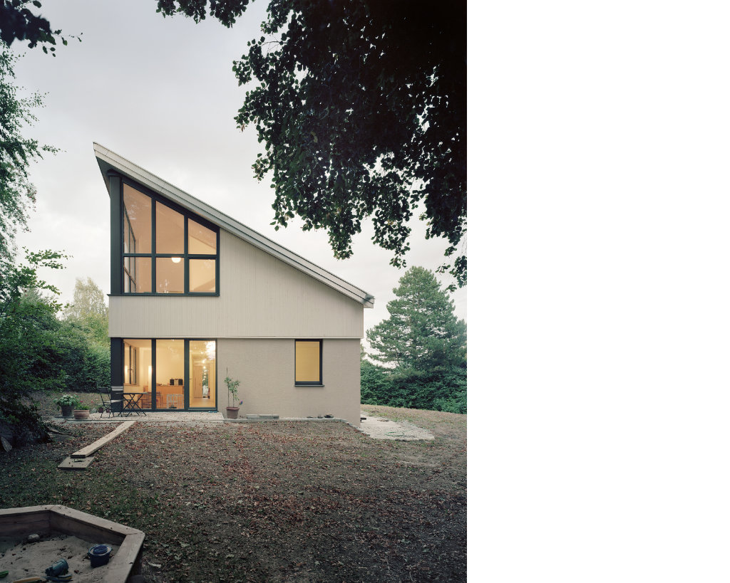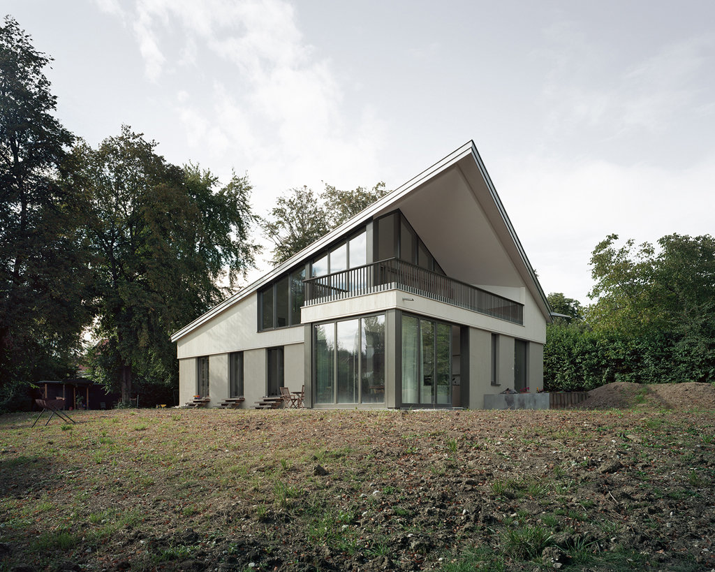 Das Haus am Ammersee steht auf einem grossen parkähnlichen Grundstück, umgeben von hohem und altem Baumbestand auf einem Höhenzug entlang des Ammersees. Das Haus bietet Raum für eine 4-5 köpfige Familie und ist in Zukunft aufteilbar in 2 verschieden große Wohneinheiten. Mit der Positionierung auf dem Grundstück und der Aussenraumgestaltung schaffen wir in dem weitenläufigen Freiraum bewusst unterschiedliche Räume und Situationen, die sich im funktionalen Bezug zum Gebäude, in ihrer Privatheit, ihrer landschaftlichen Qualität und ihrer Besonnung über den Tagesverlauf hin erkennbar differenzieren. Durch die spezielle Dachform gliedert es sich aus der Entfernung ein in die umgebende Nachbarschaft. Aus der Nähe bekommt das Gebäude eine unerwartet skulpturale Erscheinung. Das Gebäude ist eine Holzständerkonstruktion und wird mit einer Sole-Wasserpumpe geheizt. Es erreicht den Standard „Niedrigenergiehaus“.