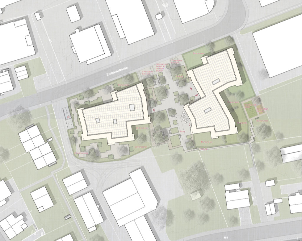 Unser Konzept des Weiterbauens an der bestehenden Situation erzeugt mit seiner baulichen Verdichtung Synergien zwischen Verschiedenem und schafft keine Konkurrenzsituationen durch Wiederholung von immer Gleichem.