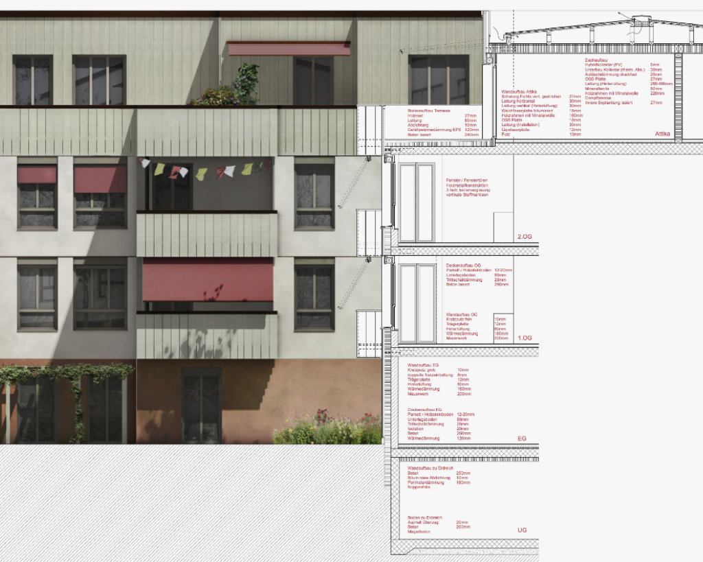 Ein Einfamilienhaus aus den 1930er Jahren soll saniert werden, während das Grundstück gleichzeitig auch noch bauliche Ausnützungsreserven besitzt. Unser Entwurf beinhaltet im Sinne einer integralen Planung und Mehrwerterzielung für die Bewohnerschaft und für das ganze Grundstück neben der Totalsanierung des Bestandsgebäudes auch die Erstellung eines neuen kleinen Wohnhauses und die Gestaltung des Freiraumes mit Garten, Hof und alter Remise. Das Ziel war eine Ressourcen schonende und sozial verträgliche Nachverdichtung mit vielfältigen, privat bis gemeinschaftlich nutzbaren Aussenräumen.