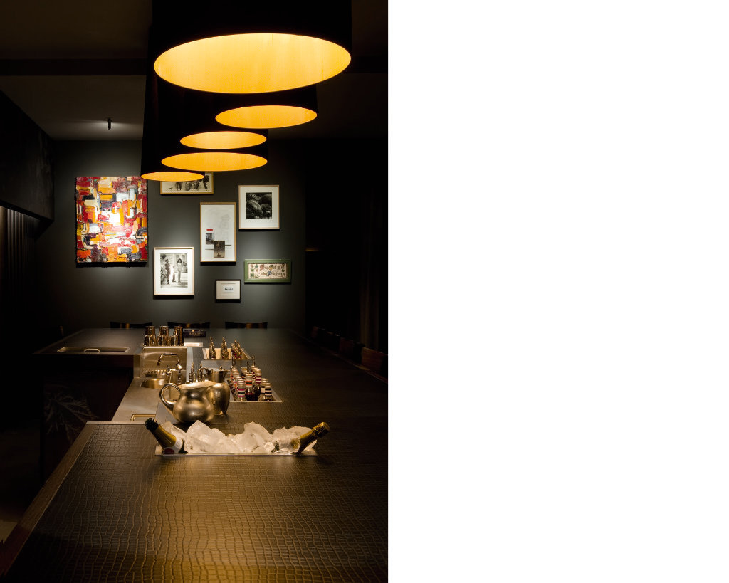 Die Räume der Buck & Breck Cocktail Bar finden sich in einer besonderen räumlichen Konstellation in Berlin Mitte wieder; das ehemalige Ladenlokal im Blockrand neben der Polizeiwache im Plattenbau mit einem Hinterhof, der an Brooklyn der 1980er erinnert. Etwa Zweidrittel der Räume wurden umgebaut, der Rest dient nutzungsflexibel als strategischer Erweiterungsraum für Events, oder zu einem späteren Zeitpunkt als Ausbauoption. Grundidee der räumlichen Konzeption der Bar ist der Bartisch. Er steht als einziges Möbel der Bar im Mittelpunkt. Seine Wahrnehmung als der zentrale Ort in der Bar wird durch das Beleuchtungskonzept mit warmem und kaltem Licht pointiert. Der Bartender und die Gäste teilen sich diesen grossen und massiven Holztisch. Das ermöglicht dem Bartender in der ca. 15 Gäste fassenden Bar jederzeit den persönlichen Bezug zu seinen Gästen. Die Nuancen zwischen privat und öffentlich, die man aus der Benützung von Stadträumen kennt, wurden auf den Massstab des Barraumes transferiert und mit innenarchitektonischen Mitteln umgesetzt. Es entstehen auf kleinem Raum gleichzeitig eine Vielzahl an verschiedenen Atmosphären. Von Aussen ist die Bar nicht unmittelbar erkennbar. Ein in seiner Möblierung veränderbarer Raum für Kunst ist der Bar vorgeschaltet und verändert immer wieder die Interaktion der Bar mit dem öffentlichen Raum der Stadt.