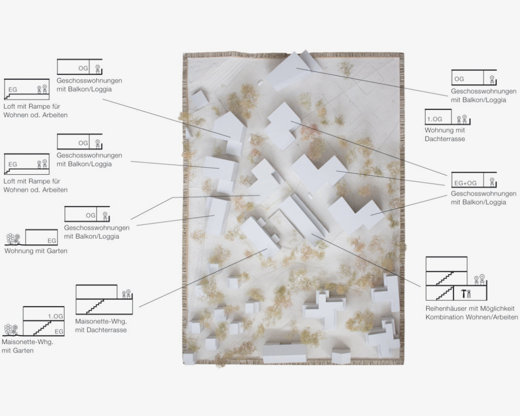 DURCH EINEN PRÄZISEN MIX VON GEBÄUDE- UND FREIRAUMTYPEN FÖRDERN WIR SOZIALE DIVERSITÄT UND RÄUMLICHE ANEIGENBARKEIT.